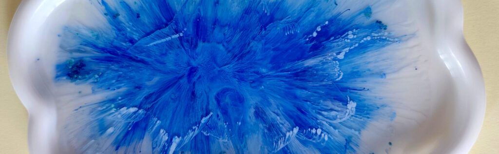 Unter anderem kann man Dinge (getrocknete Pflanzenteile, Steine, Muscheln,..) im Harz einschließen und somit konservieren. Ebenso kann Farbe dem Harz beigemischt werden. Die Bewegung der Farbe wird im Harz festgehalten, ein flüchtiger Moment für immer bewahrt – faszinierend: das ist Farbe in Form!